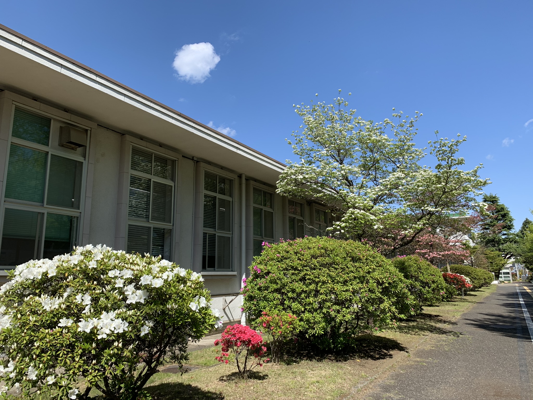 新型コロナ感染症の影響が広がる。新緑のイチョウ並木を見上げる人はいない。色鮮やかなツツジと可憐なピンクと白のハナミズキも青空の下で寂しそうだ。アカシアの老木はおっかなびっくり葉っぱを広げている。