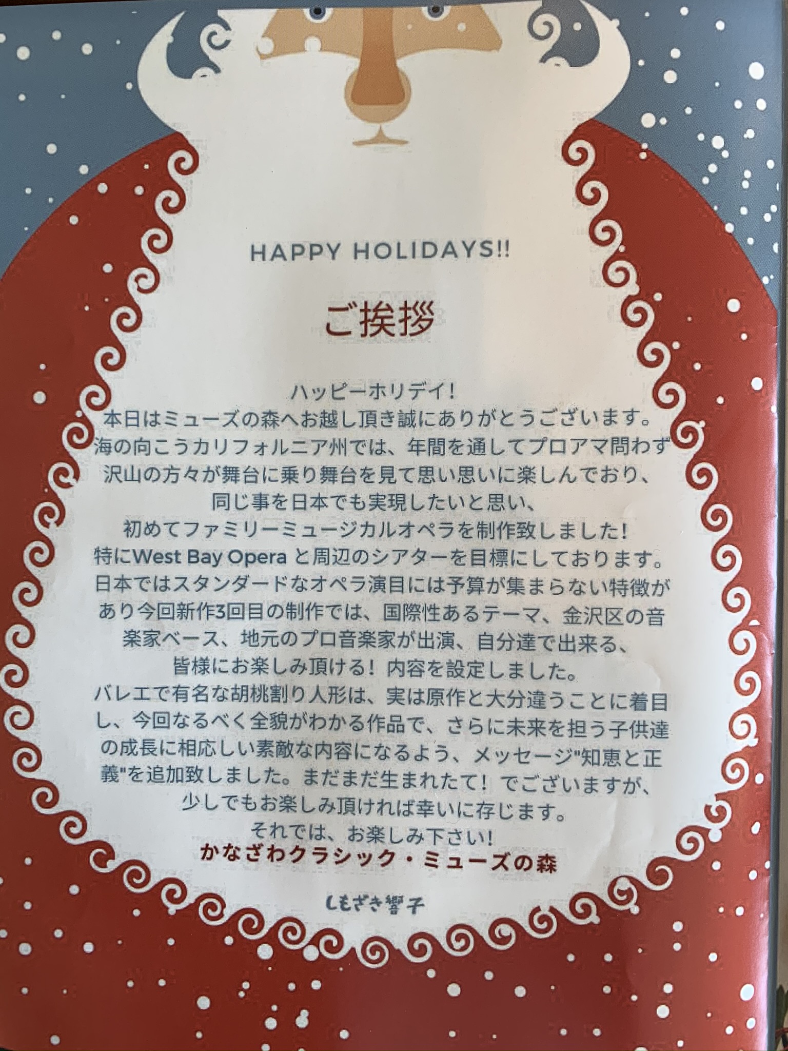 舞台で歌うのはしてきたけど、芝居(のようなもの)をしたり、ダンスをしたり(意外に楽しかった)するのは、たぶん最初で最後の “Musical Opera” —-The Nut Cracker—- 楽しく時に精神的に苦痛を伴う練習をし、でも舞台に上がったときは思いっきりやった、おもしろい経験だった!!