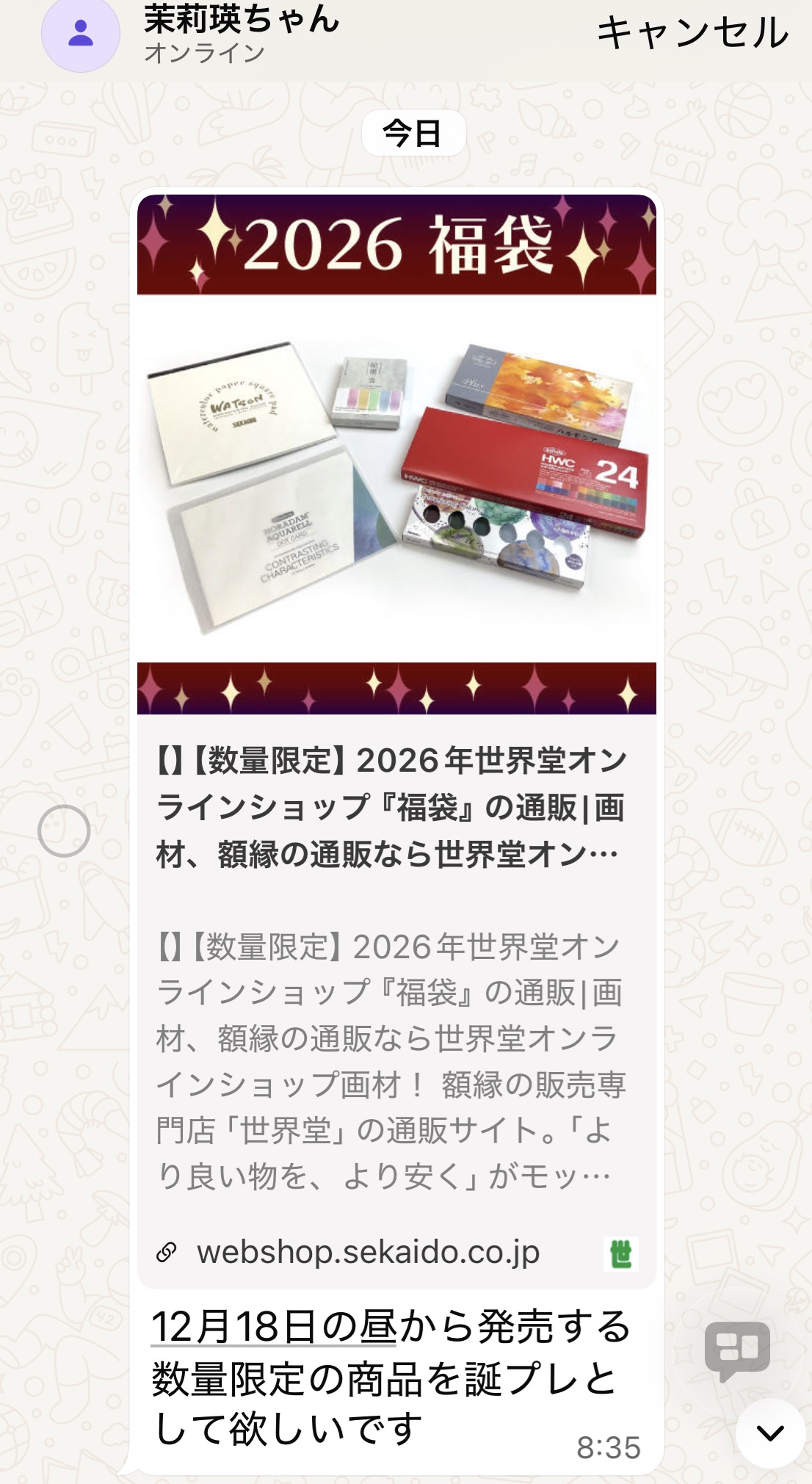 12/6(土) (to Setsuko) 「風邪気味でやや調子悪いです。」「土曜日はヘルパーさんが来てくれる日で,歩行の見守りもやってもらってます。今日はいつもと違う人が来たこともあり「歩くのやめようかな」,,とか思ったけど,ここでめげてはいられない」と思って歩いたら、ちゃんと歩けました。怠けてはいけないです♪