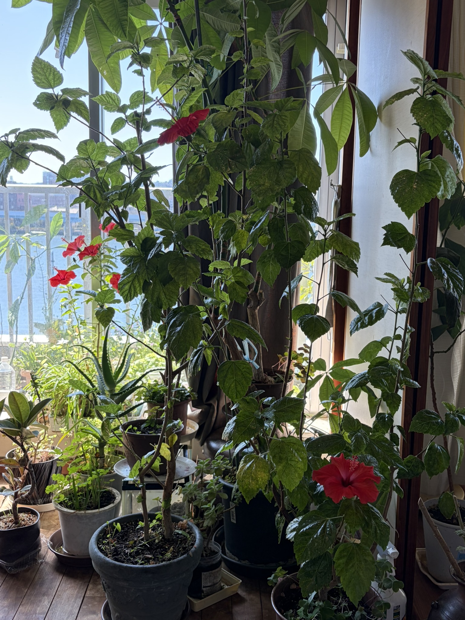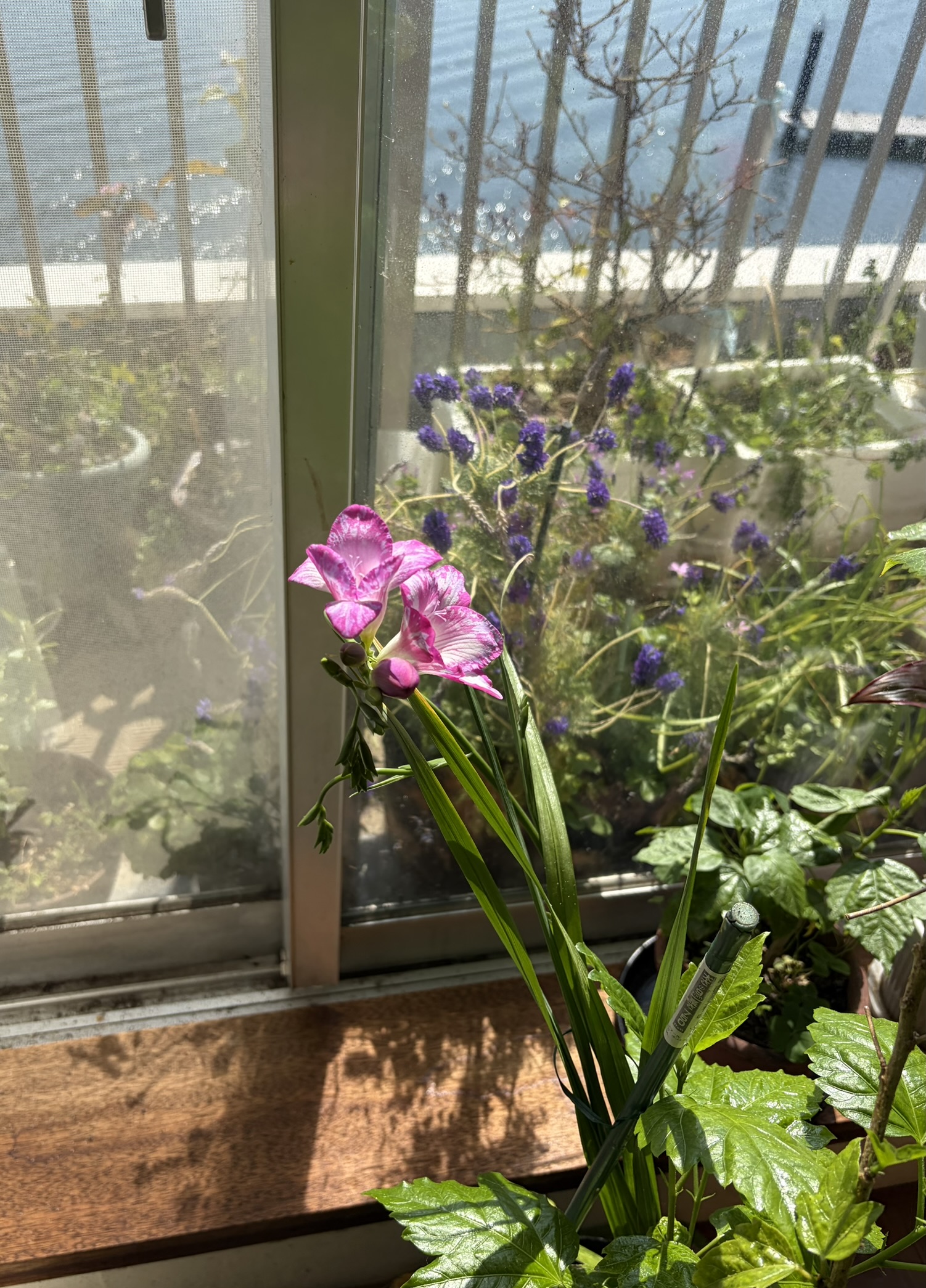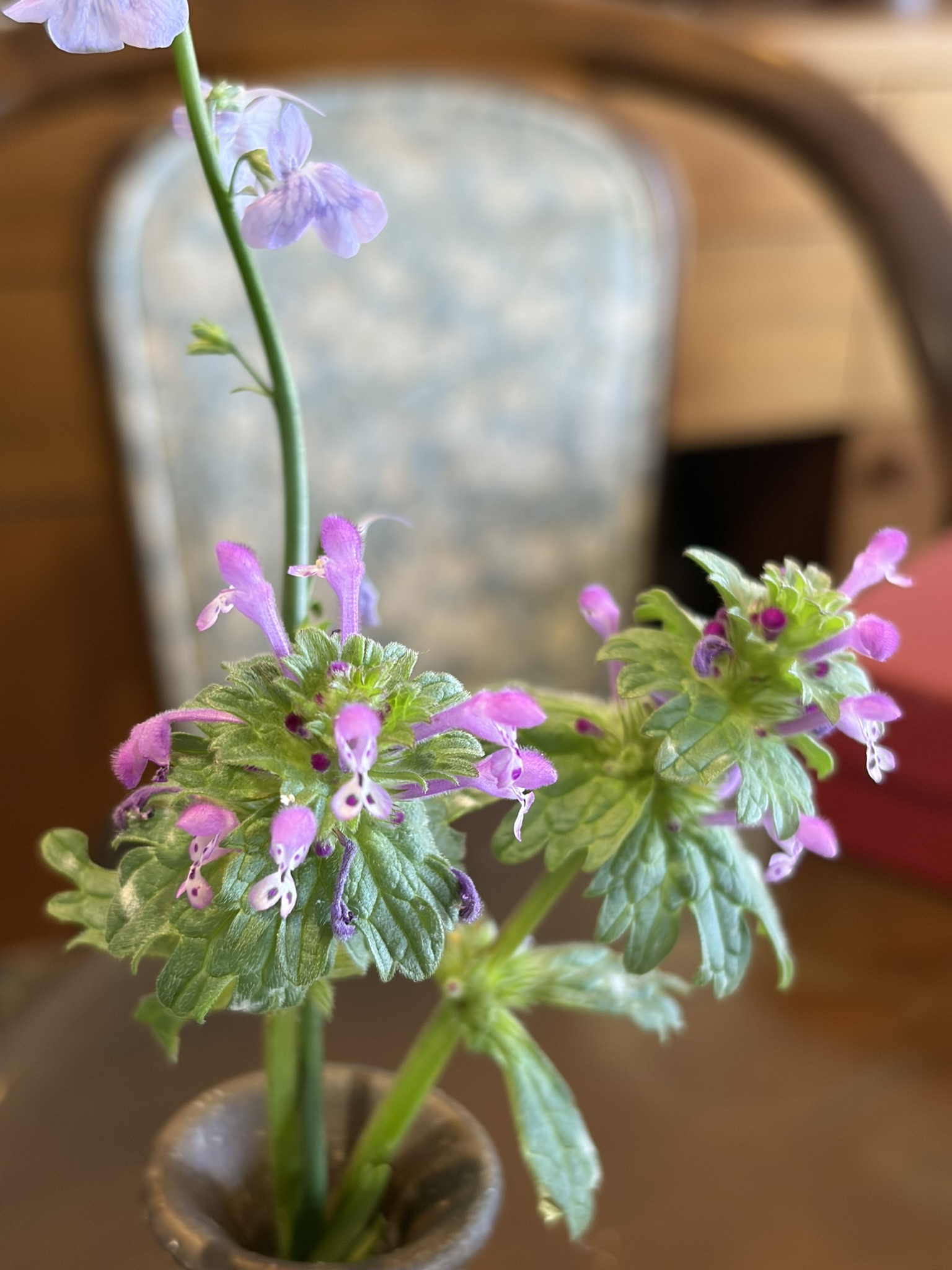 部屋の中には寄せ植えのヒヤシンスが咲き、チューリップ、花大根、カラー、仏の座などが蔓延っている。