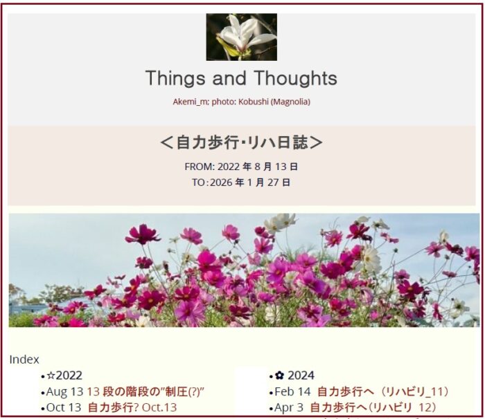 <Index> (Previous one) 1/27 ハイム花壇散歩計画 2/1 Two Good News 2/2「自力歩行」日誌PDF版