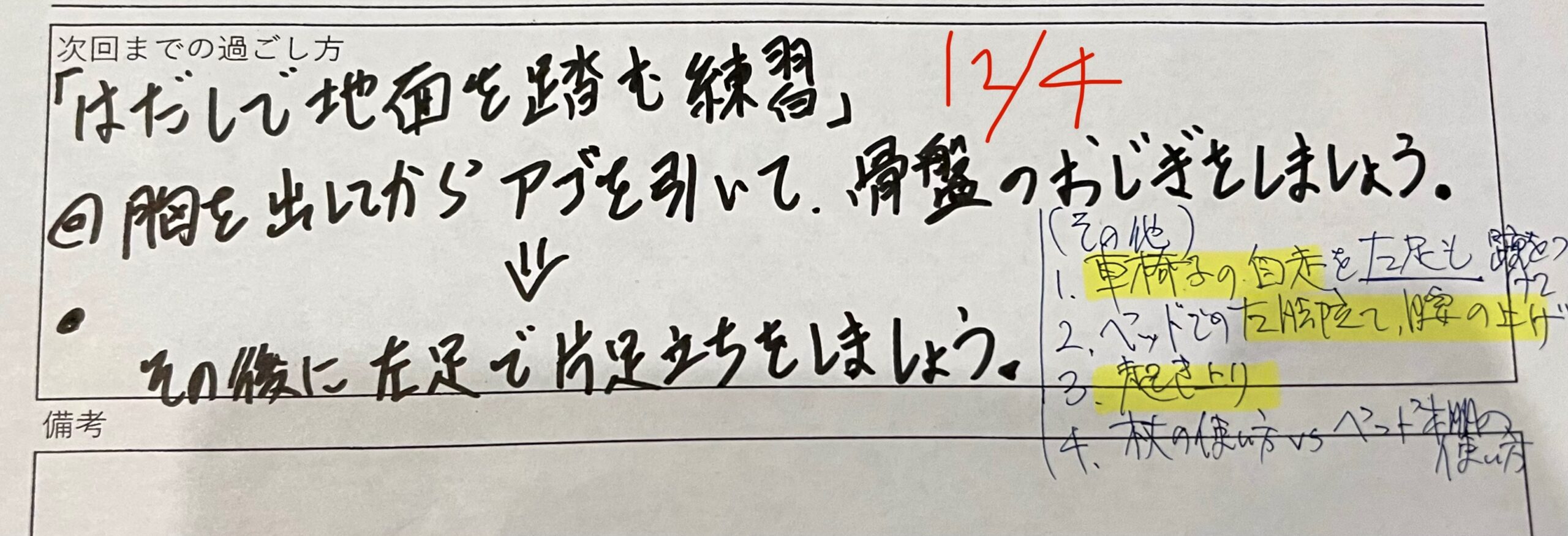 | 16. 左足伸ばしの踵あげ8/12 | 17, 左足伸ばし 8/19 | 18.歩行練習8/26version |