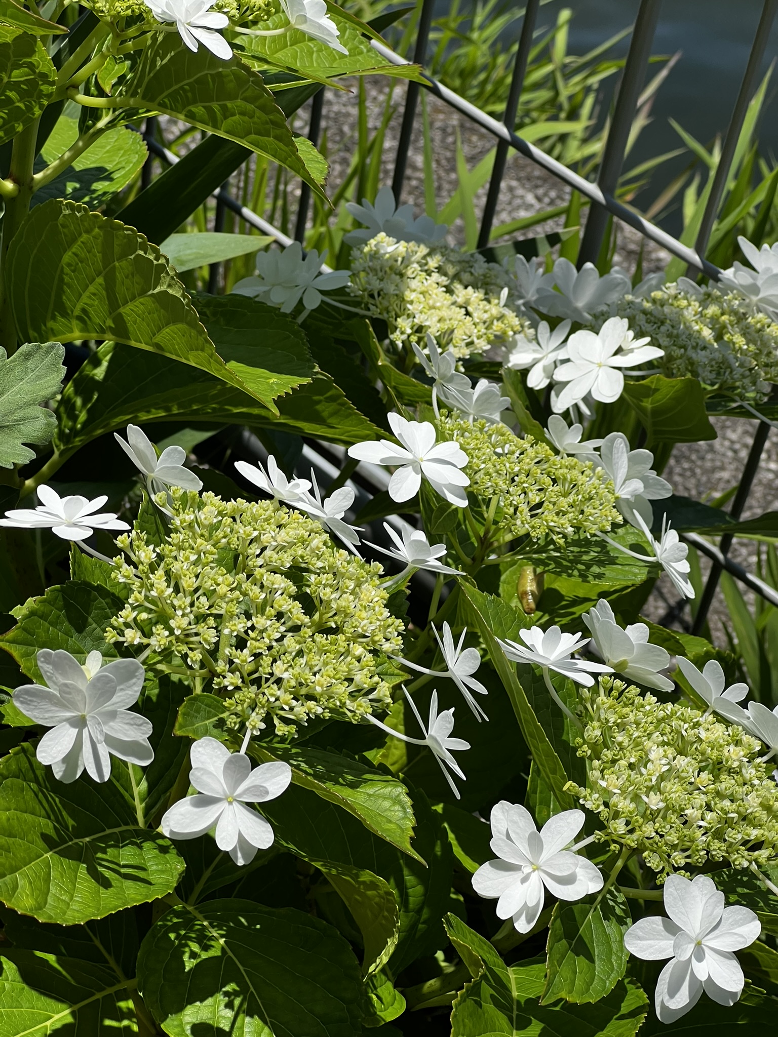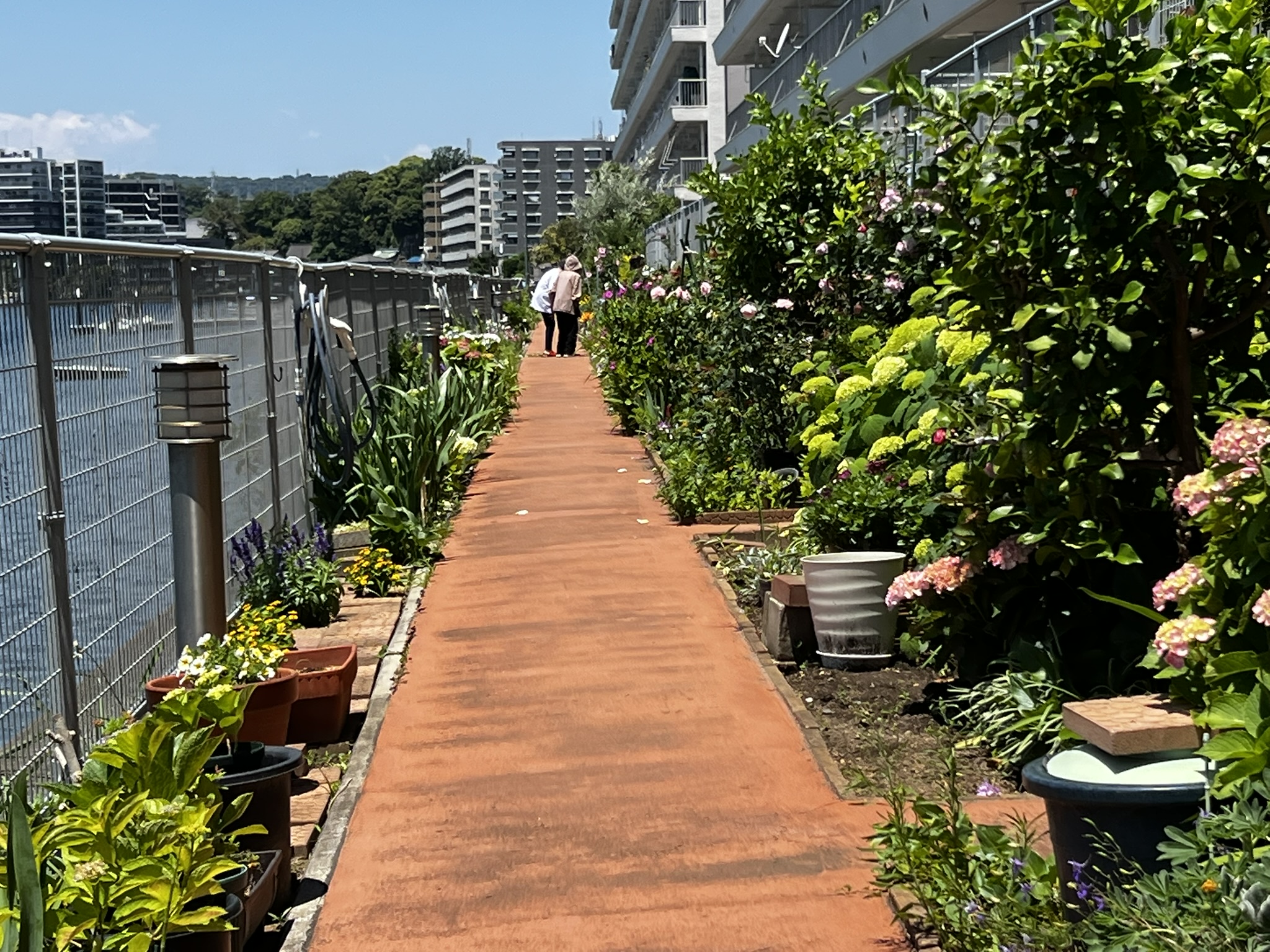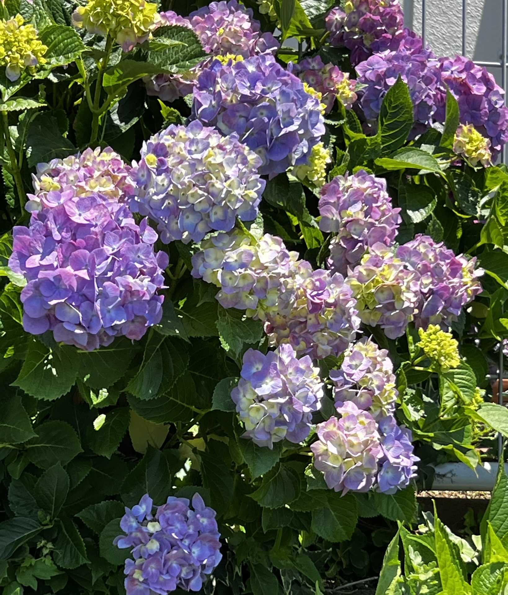 どんな花々が私を楽しませてくれるだろうか?6/1は紫陽花が咲きそろい始めていた。でも、舗道に大きくはみ出している花は私にとっては要注意・恐怖だ。足元の草取り後の枯れ草や石ころ、いろんな「障害」物にも注意して歩行技術の向上を図ろう!