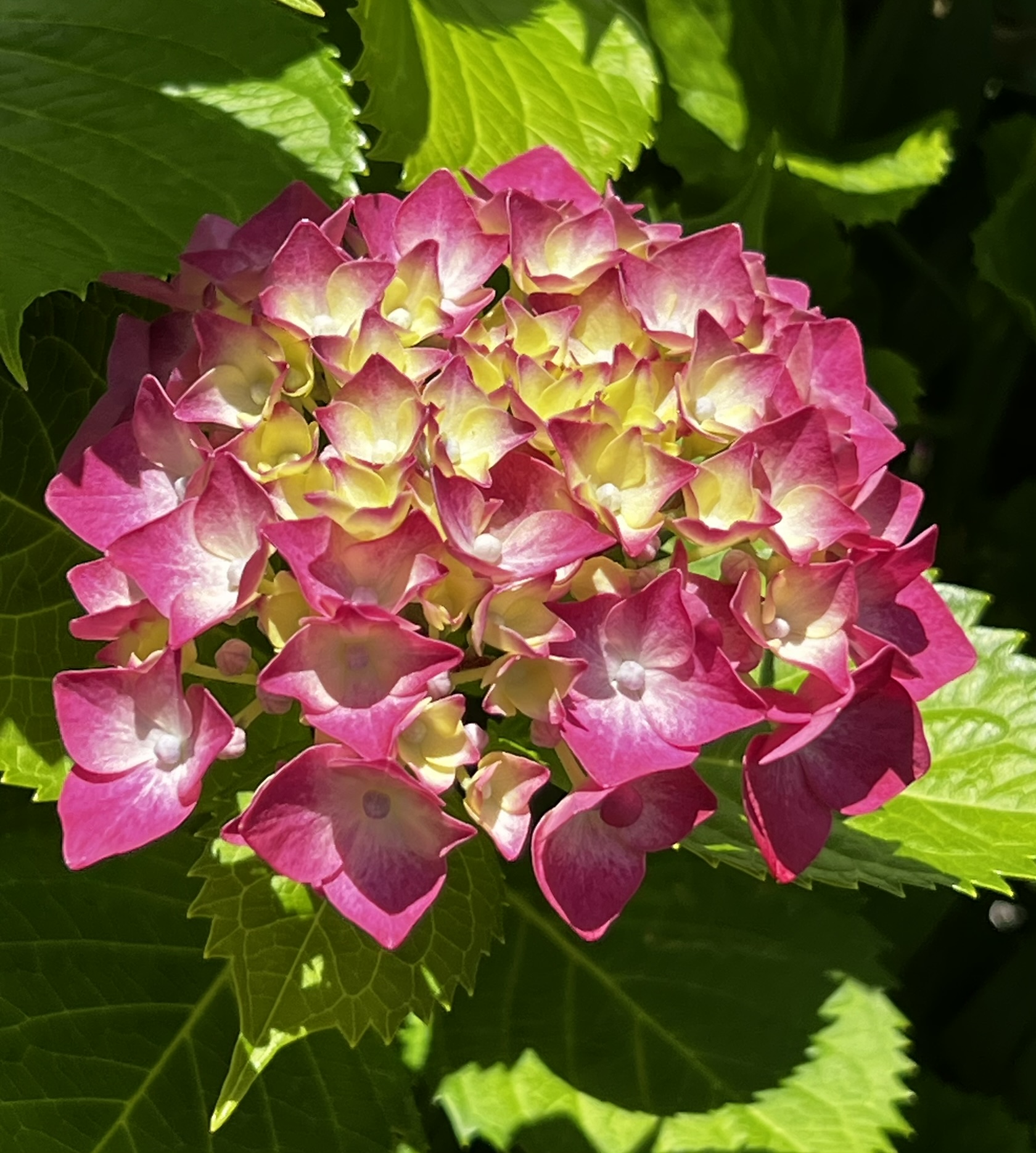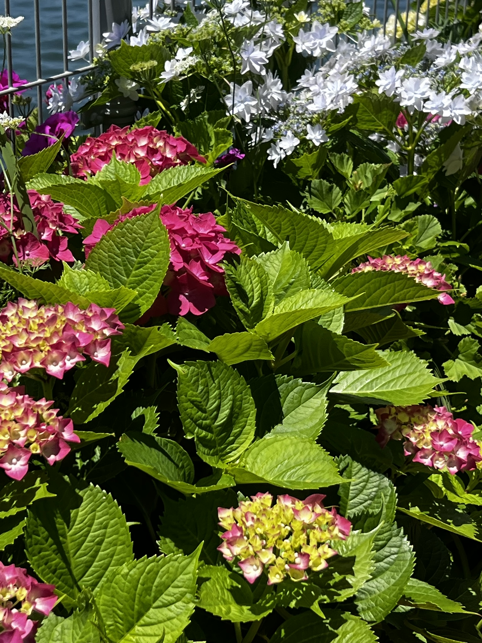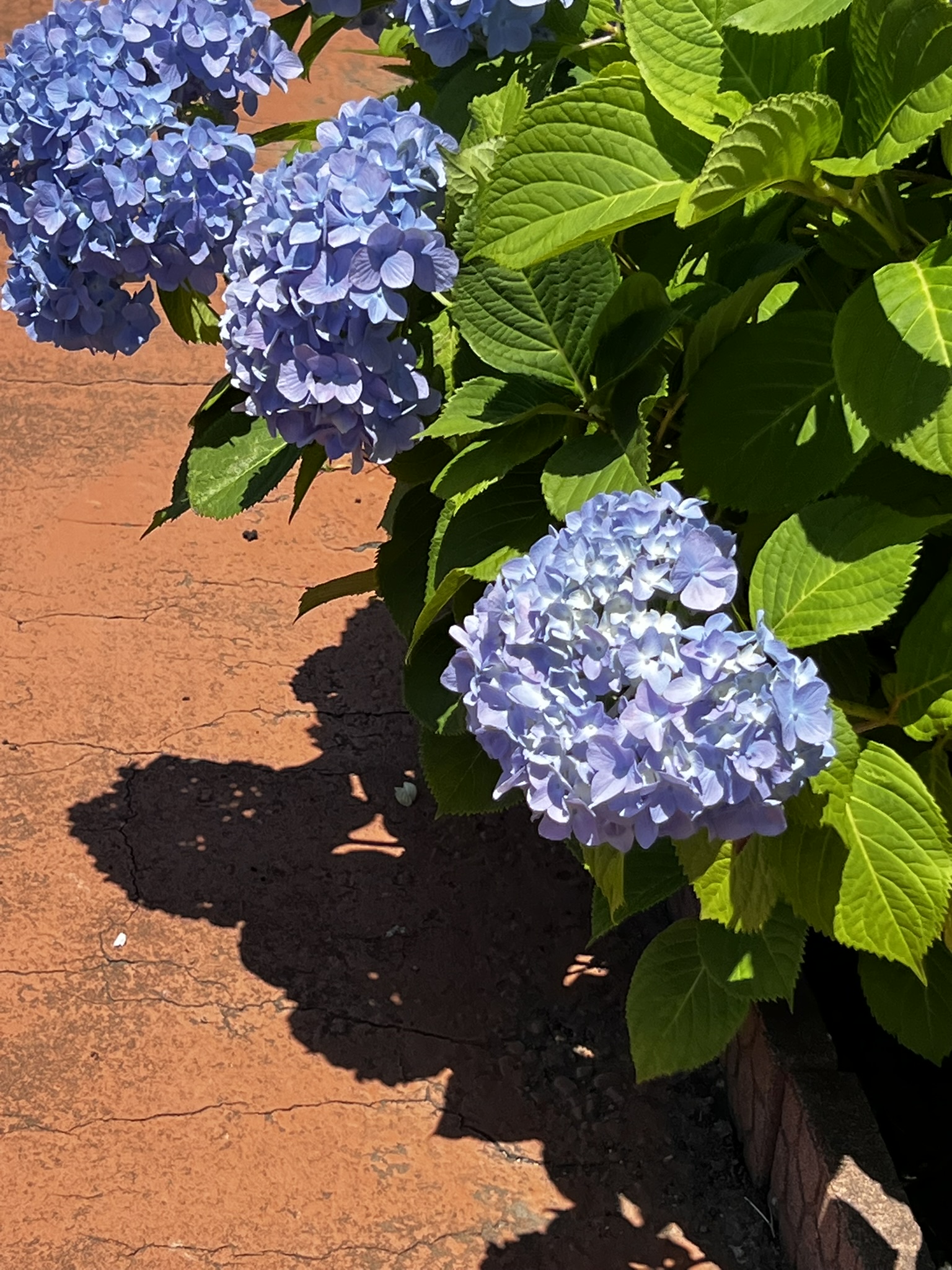 どんな花々が私を楽しませてくれるだろうか?6/1は紫陽花が咲きそろい始めていた。でも、舗道に大きくはみ出している花は私にとっては要注意・恐怖だ。足元の草取り後の枯れ草や石ころ、いろんな「障害」物にも注意して歩行技術の向上を図ろう!