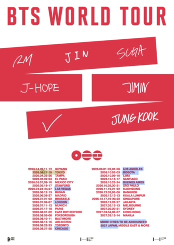 8/26 DodgerStadium 10/19 Seline Shop in Paris BTS World Tour ’26