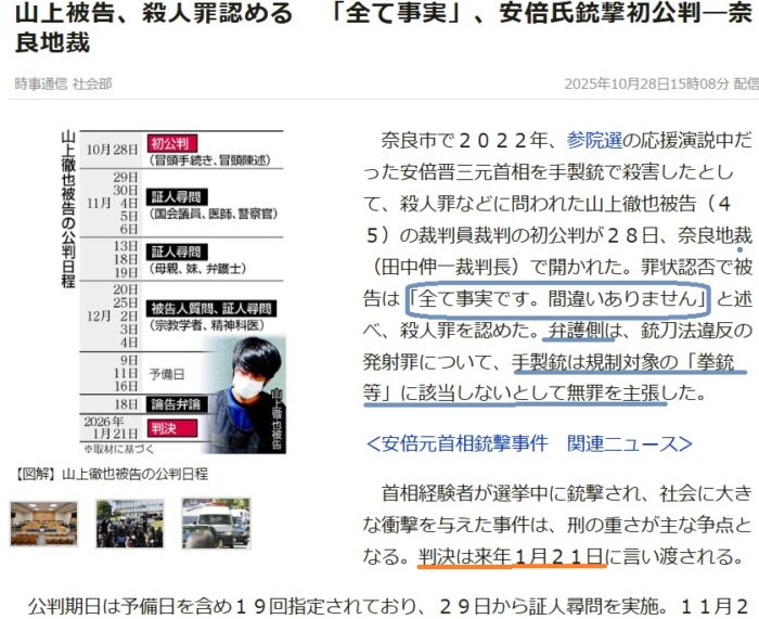 検察側は冒頭陳述で、山上被告は、母親が世界平和統一家庭連合(旧統一教会)に多額の献金を行って家庭が崩壊し、15年には兄が自殺したことから恨みを募らせたと説明。教団最高幹部への襲撃を計画し、手製銃を製造したと主張した。