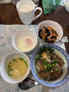 「お赤飯ランチ」についてのMr.Kobaの説明が超おもしろ。「円海山のこのへんの人は皆元”百姓”だから、毎月一日はお赤飯だったんですよ。だからここでもやってるんです。」田舎の伝統・風習が息づいているんだ、懐かしい、感動! こもれびトイレ歩行練習も終盤か。