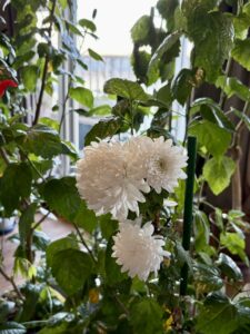 11/7のKomoRec歩行は室外一周、楽しかった。リラックスして歩くと大丈夫のようだ。午後のレクリエーションでもセンター席まで歩いた。Mr. Shimの姿勢と歩行が不安定で気になった。秋になると菊が花開く。