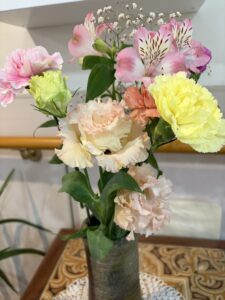 🌺 10/26 Kumiko&Cosmos 冬支度が必要なくらい気温が下がってきた。娘にしか頼めない仕事がある。ワイワイ話をしながら衣類の入替え、クリーニングに出すものの仕訳、ショートスティ用衣類の記名など無事終了!Thank you! 一緒にLiving Willのチェックも完了(Great!)きれいなコスモスも来た、ありがとう!!
