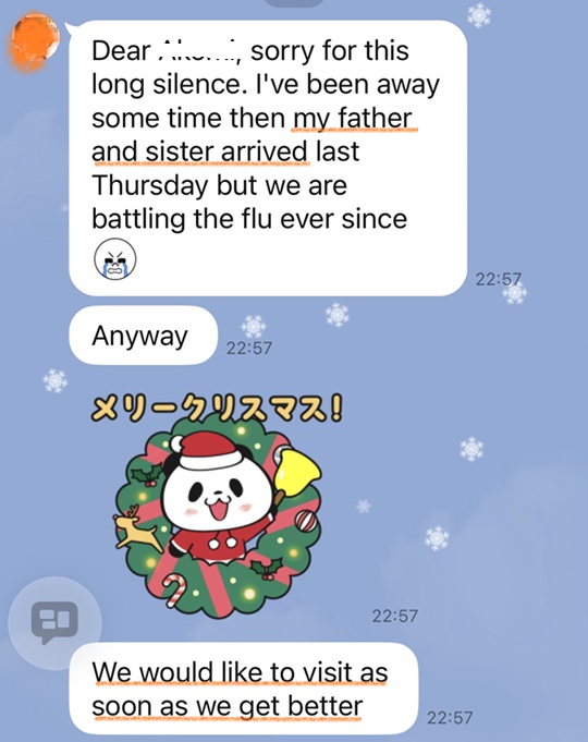 12/26(Friday) 水曜日Daycareを休んで金曜出席。一日中;1) 洋子さんから🎄mail、2) まり子さんからも🎄mailと「歌の会」のオファー、3) 耀太kunからもOliJuju質問mail、4) Kenからもメール(Xmas cake食べたか?) 5) Daycareでは淳子さんからの心優しい手紙(Mr. Shimについて)、6) Sarahからも「遊びに行く」メール、そして最後にスローンさんからの「来年3月横浜訪問予定」メール。どれが一番うれしいとかは言えないけれどみんなが私を思ってくれていてこんな嬉しいことはない。