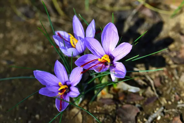 サフランは、秋咲きのクロッカスの一種で、もともとは染料、香料、薬用として多く栽培されていましたが、今は観賞用としても利用されています。パエリアやサフランライスの黄色は、サフランの3裂した赤色の雌しべから得たものです。