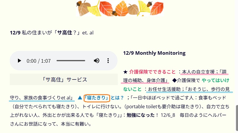2025/12/09 ケアマネさん情報: 12/9「サ高住」et. al