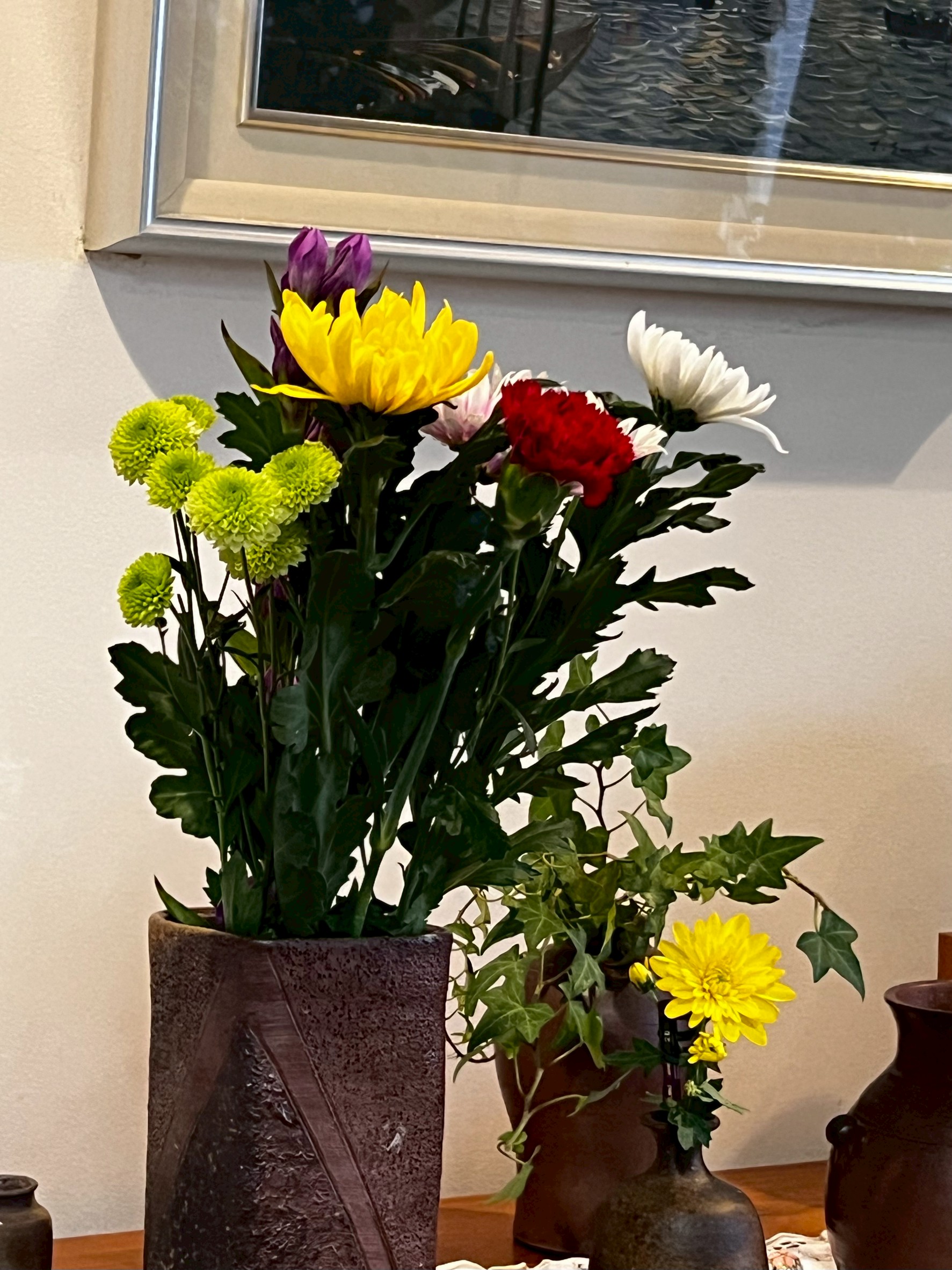 11/3-5 お祭りの後の疲労感が夏よりも強かった。歩行にも難が出て困った。身体の緊張が強くなりぎこちない歩きが数日続いた。11/6(木)になり、ゆったりした気持ちで歩いたら「あら?普通に歩いてるワ」の感覚が戻ってきてほっとした。これからもKen達との大船フラワーセンター行き、こもれびショートスティ、Ericの訪問、年賀状作成。。。日程・タイミングなどを考えエネルギーを上手に使い、しっかりやっていこう。