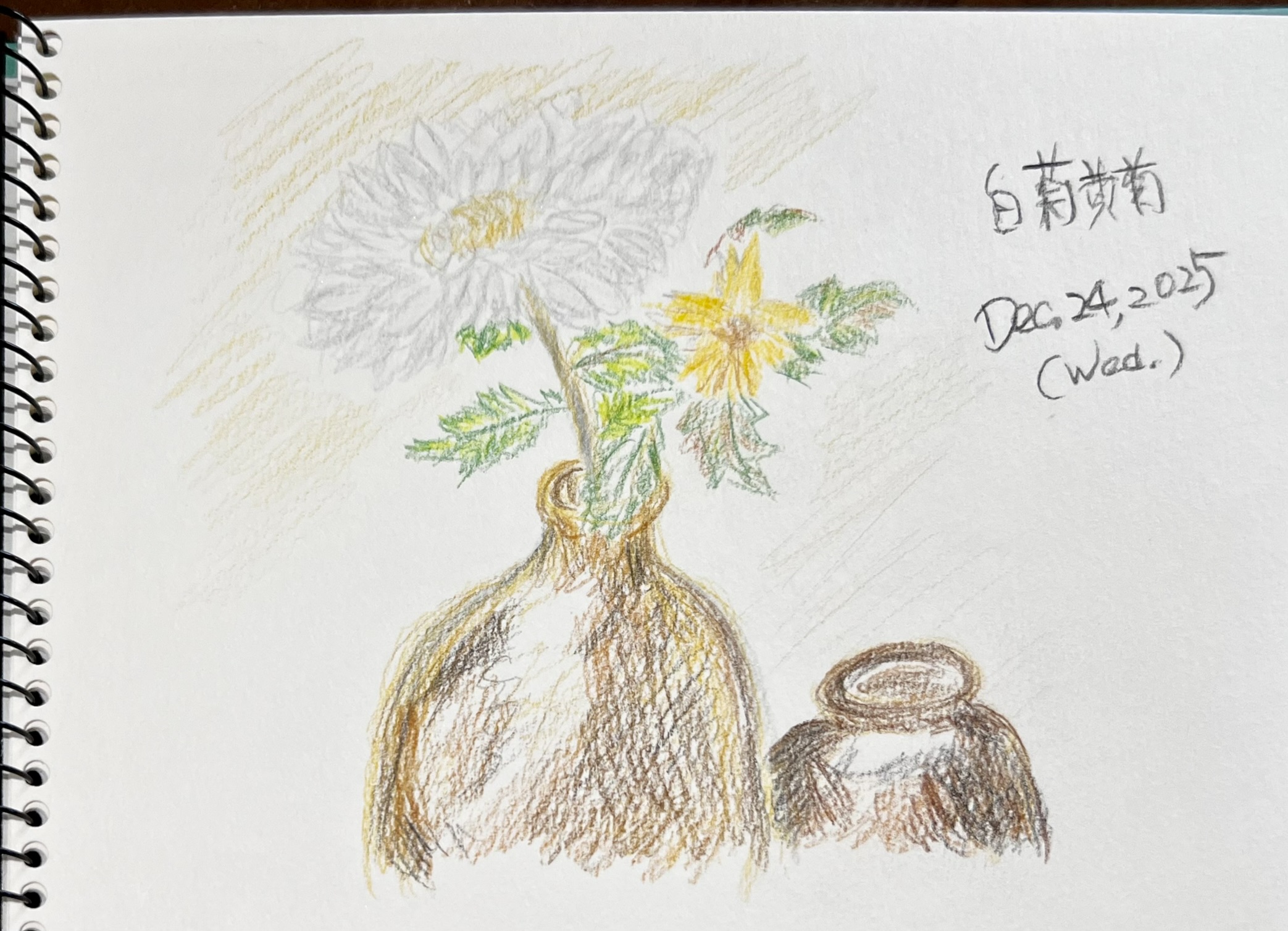 <Index>(Previous one)11/30 並木Drive with Ken 12/2「師走」のlemonade &藻谷浩介 12/4 生成AIと文学 12/6歩行、「歌の会&Brahms」 12/9「サ高住」et. al 12/13 遠い思い出など 12/14 左足の強化!&Mr Shimの急逝 12/16 Mariと絵具+Jess’sSOS 12/20 Message from Yohta, OliJuju 来日 12/23 年末のリハ腰痛など