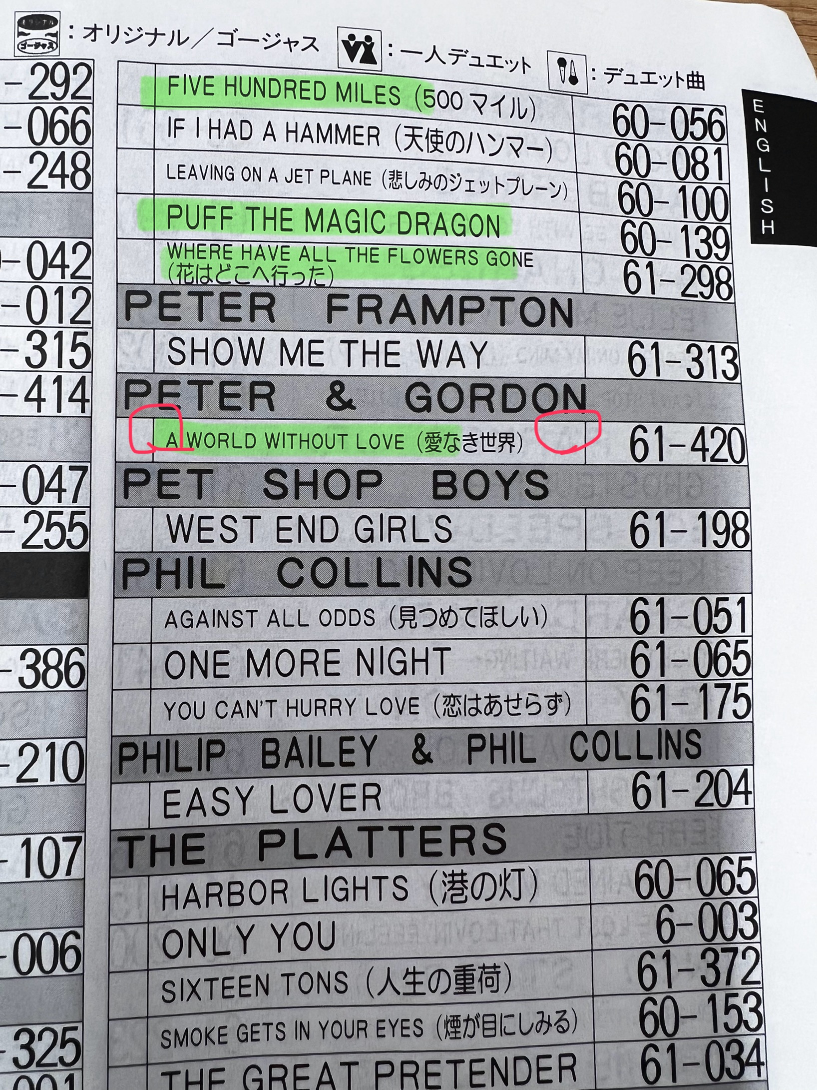 こもれび英語カラオケ曲名(📚の画像) 「愛唱歌」「シャンソン」カラオケ曲名 ♪Desperado, Eagles ♪ We re all alone ♪ Memory (and other songs) & Other songs